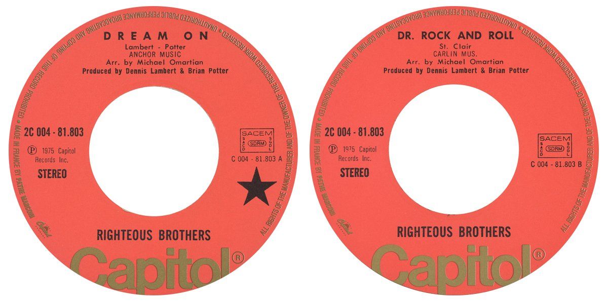 The Righteous Brothers singles on the Verve label released in the Netherlands, were manufactured in Germany and used the same catalog numbers as in Germany.